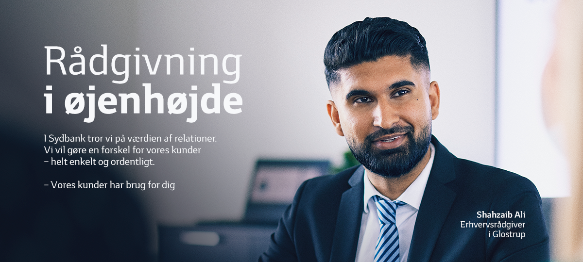 Hos Sydbank er vi eksperter i at hjælpe rygraden af dansk erhvervsliv – de store og mellemstore virksomheder. Derfor kalder vi os Danmarks Erhvervsbank. Men vi rådgiver også dagligt tusindvis af danskere med deres privatøkonomi og investeringsmuligheder. Vi prioriterer de nære relationer og baserer vores rådgivning på et fundament af stærk faglighed og ordentlighed.
