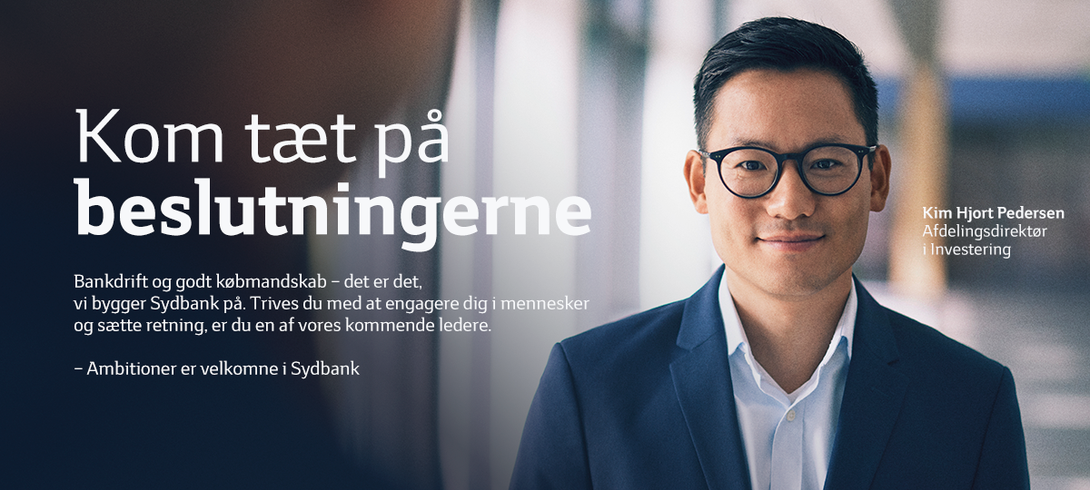 I Sydbanks Private Banking og Investeringscenter i Sønderjylland søger vi en dygtig lederprofil som investeringschef. Du skal samtidig have et solidt investeringsfundament at stå på.